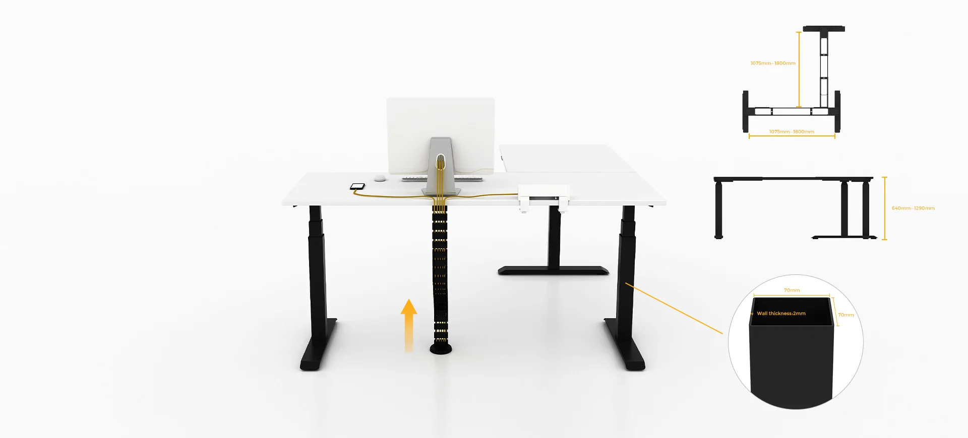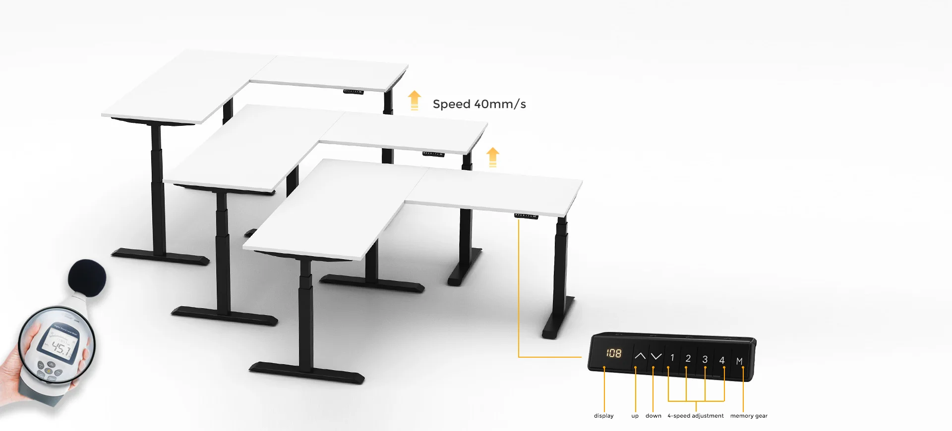 A velocidade das mesas duplas sit to stand chega a 40 mm/s, e leva apenas 8 segundos para concluir todo o processo de elevação, o que reduz o tempo de espera dos usuários e mantém o status de trabalho ininterrupto.