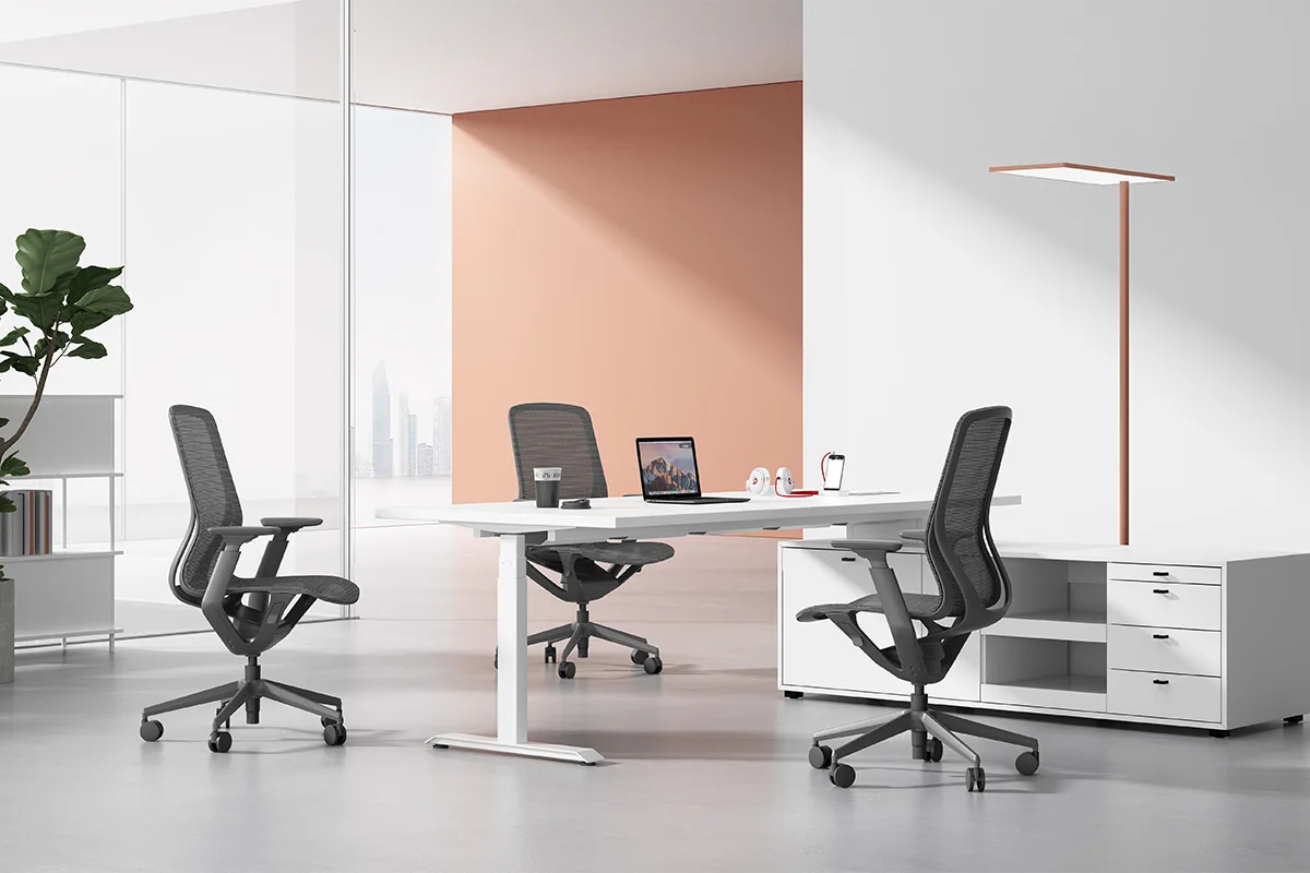 Zyra é uma cadeira de escritório ergonômica projetada com tela respirável e um perfil elegante. Seus ajustes e design minimalista proporcionam conforto e suporte, tornando-a a escolha ideal para ambientes de trabalho produtivos.