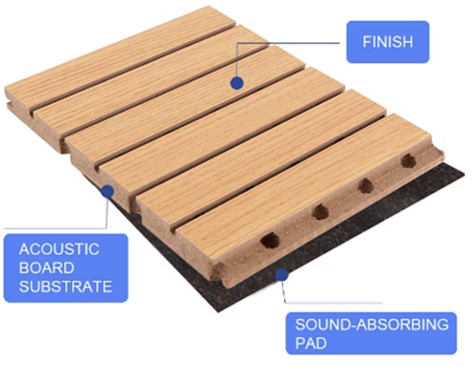 Estrutura do produto: Acabamento e material de base e tecido acústico