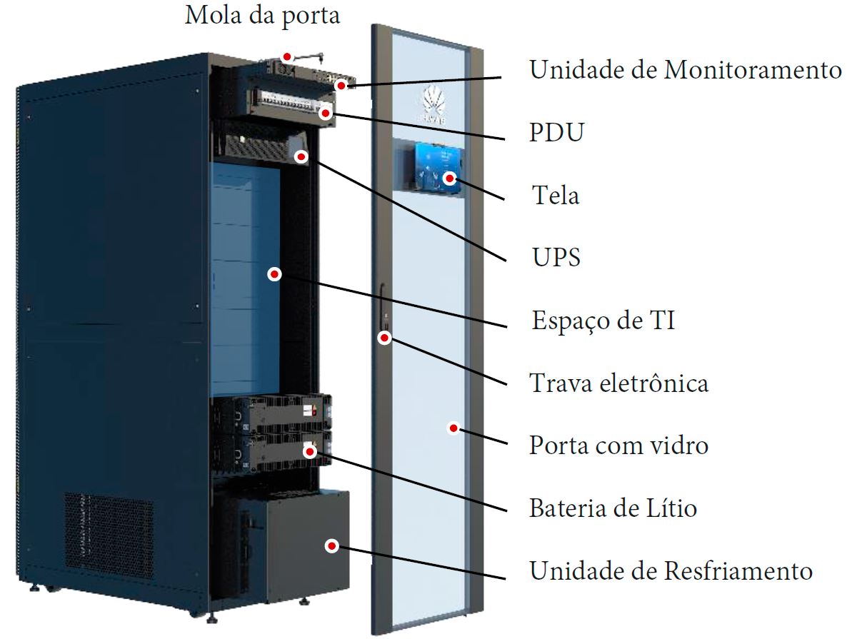 FusionModule500 é uma solução de data center modular integrado interno para filiais. Possui alta adaptabilidade de construção e é adequado para vários locais pequenos. O FusionModule500 adota um design altamente integrado e integra UPS, PDU, resfriamento, monitoramento e unidade opcional de extinção de incêndio em um gabinete. Os principais componentes são pré-testados, pré-instalados e pré-comissionados na fábrica, implementando plug-and-play no local e implantação rápida.