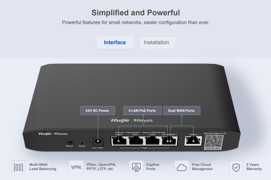 - Máx. Portas WAN: 4 × 10/100/1000 Base-T;