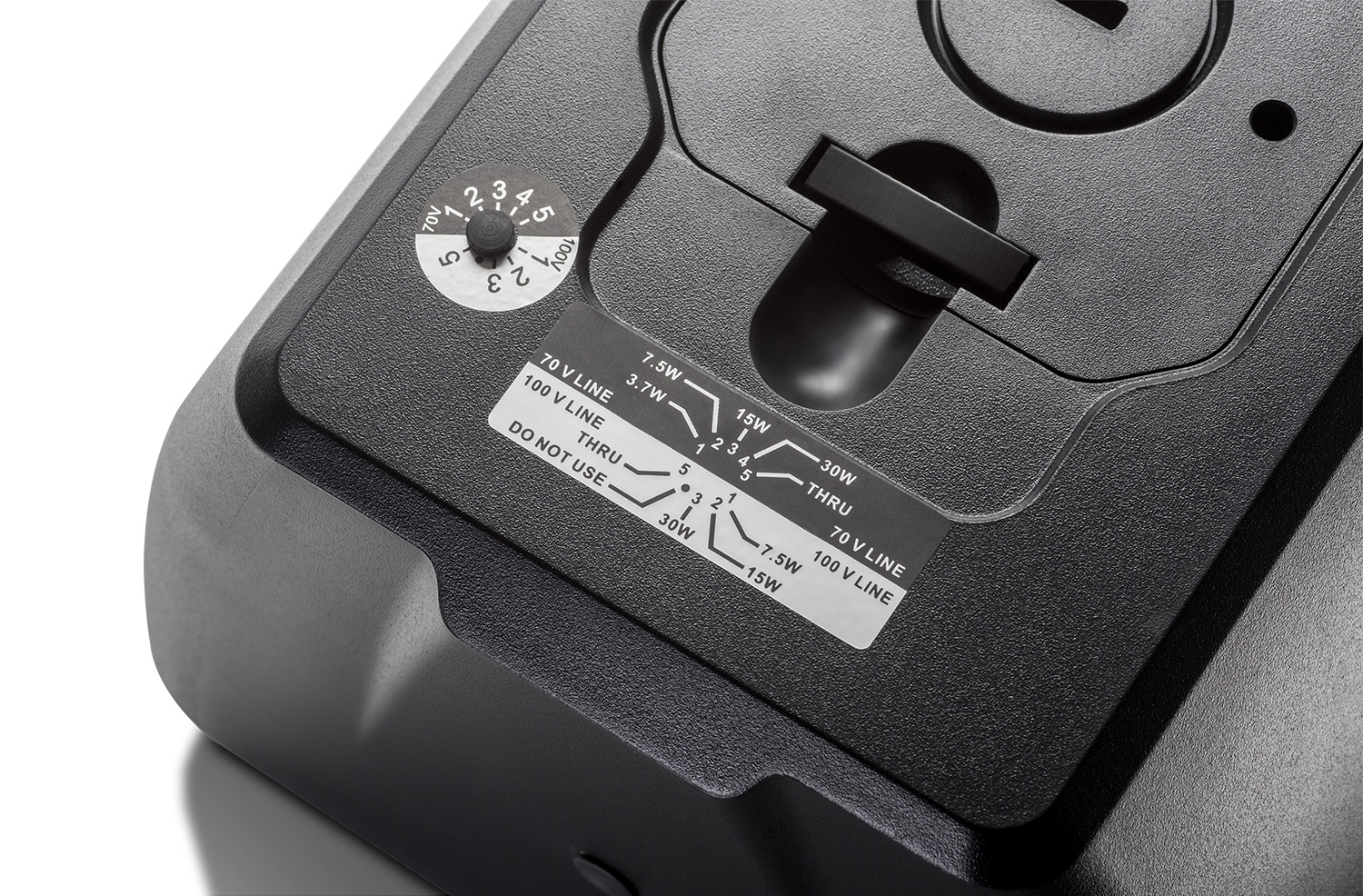- Manuseio de potência de 100 Watts (programa de 200 Watts) em configuração direta de 8Ω, além de transformador multitap integrado de 30 Watts 70V/100V.